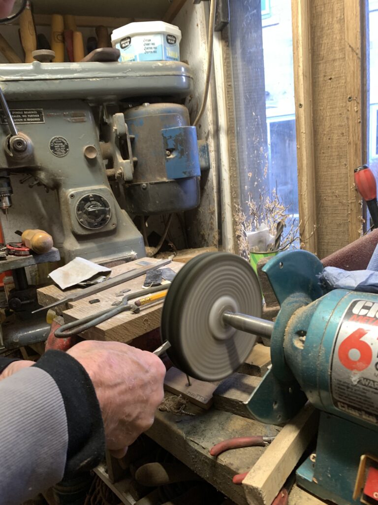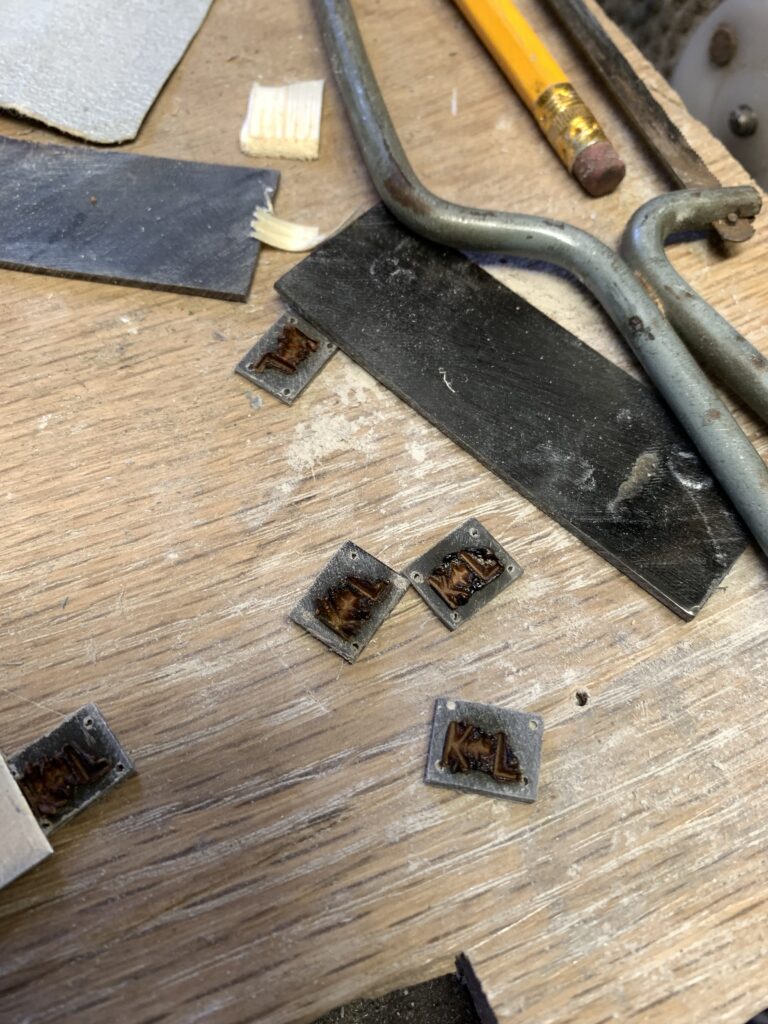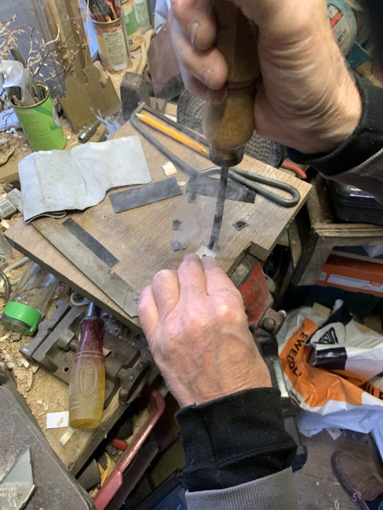 The K+L logo is then burnt into the horn. To do this a metal branding iron had to be made to shape and filed to make the initials.