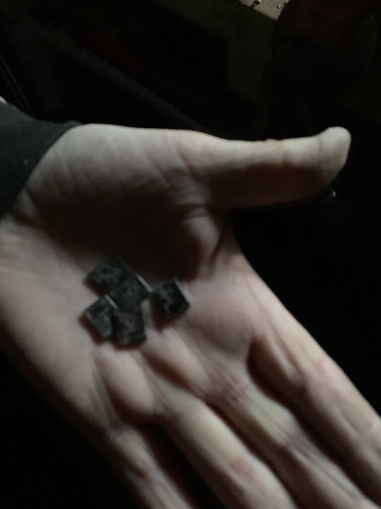 In the dales as most of the traditional upland breeds of sheep have horns we identify our sheep with a mark on the horn. Each farmer having his own mark which have often been passed down through the generations. This can be the farmers initials or the initials of the farm. I decided to make the brand tags in this same traditional way in keeping with the whole natural and traditional way each scarf is made.