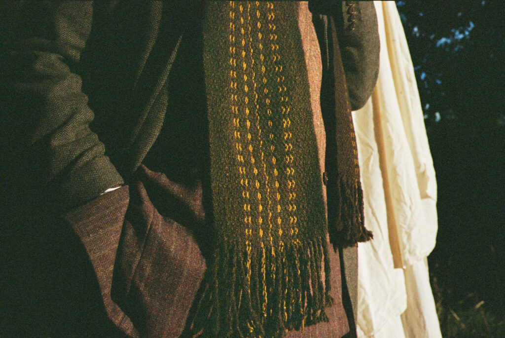 I combine this with Bluefaced Leicester wool from small family farms in Yorkshire, hand-dye the yarn, and weave each scarf myself on a tabletop loom. Every piece carries the story of two pastoral traditions, and is made with care, skill, and respect for the people, animals, and landscapes behind it.